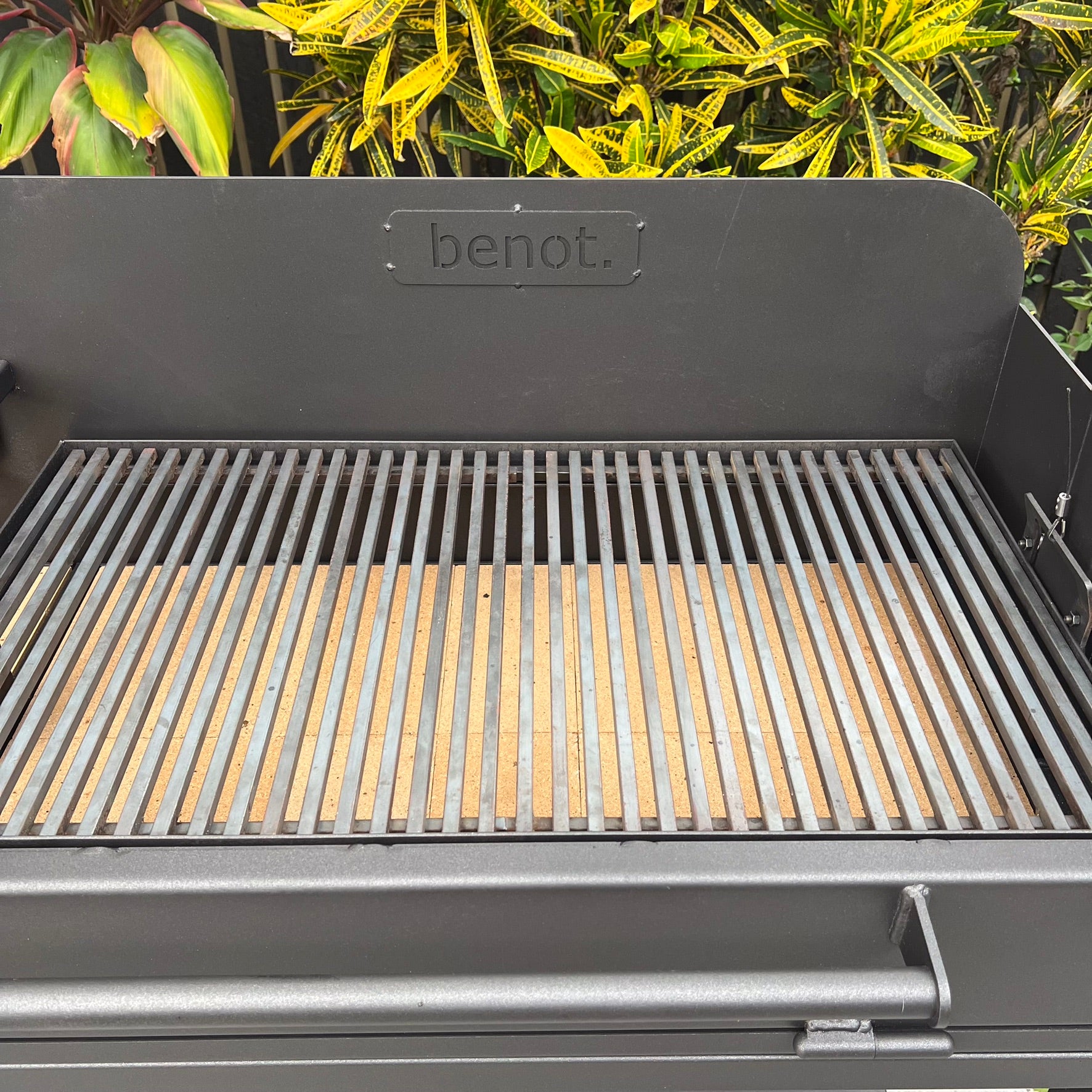 Benot fireboxes are made from 4mm steel plate, utilising precise laser cutting and CNC folding. Additional reinforcement features are integrated under the base and behind the backplate. Our BBQ's are a welded construction.