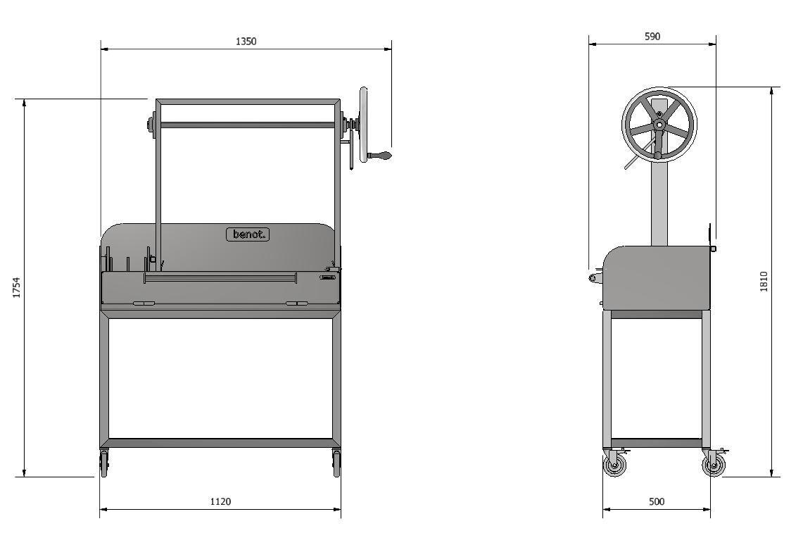 Benot fireboxes are made from 4mm steel plate, utilising precise laser cutting and CNC folding. Additional reinforcement features are integrated under the base and behind the backplate. Our BBQ's are a welded construction.