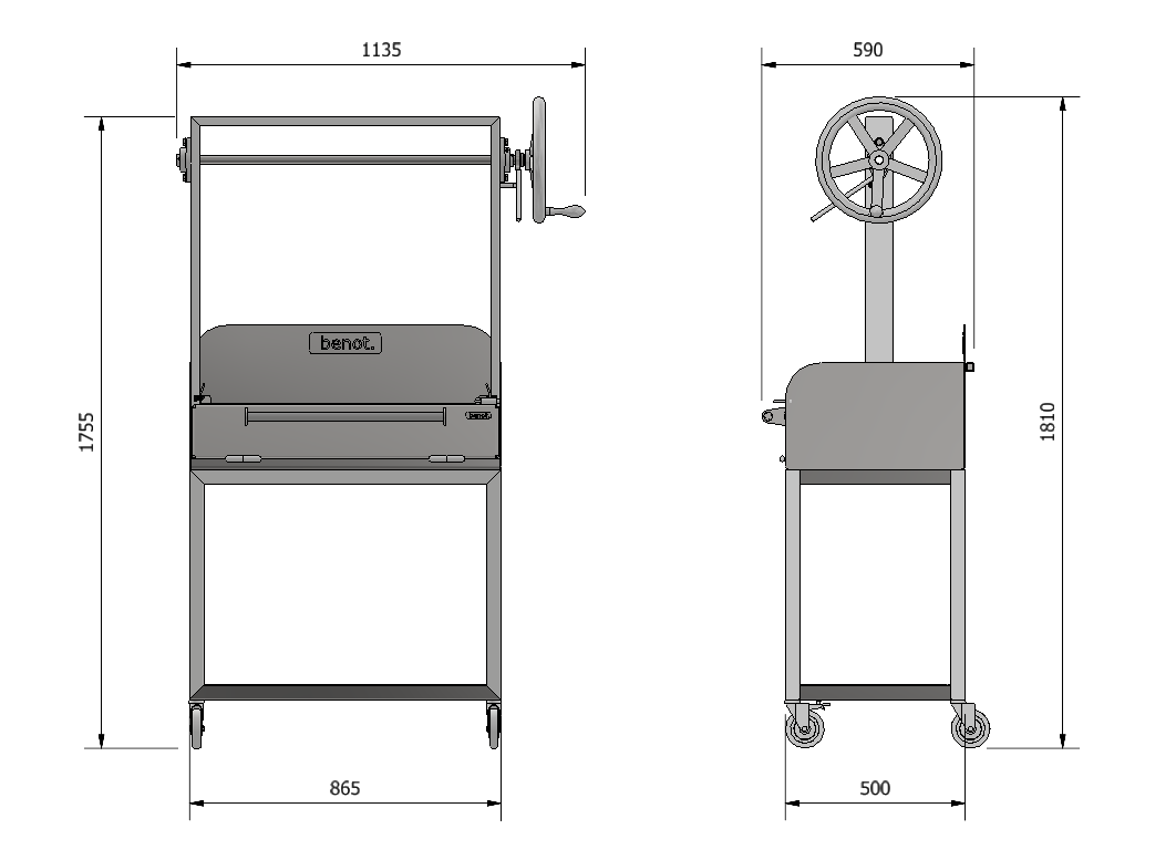 Benot fireboxes are made from 4mm steel plate, utilising precise laser cutting and CNC folding. Additional reinforcement features are integrated under the base and behind the backplate. Our BBQ's are a welded construction.